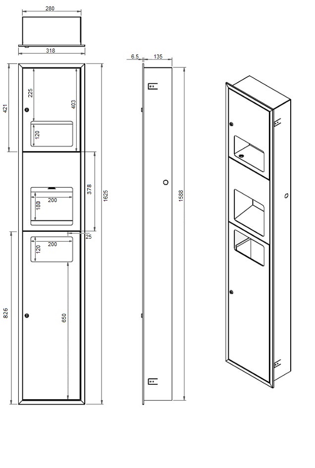 ML_ECO_73N1RECRecessed Paper Towel Dispenser, Eco Hand Dryer & Waste UnitSpecification
