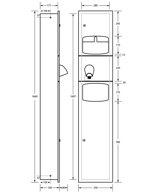 ML_73N1SMPaper Towel Dispenser, Hand Dryer & Waste Receptacle - Surface MountedSpecification