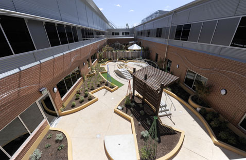The $192million 32,000m2 building is over 2 ½ levels with helicopter roof pad access. The Tertiary Mental Health consists of 2 new buildings, a 145 bed acute unit and 90 bed secure/forensic unit) and refurbishment of 2 existing heritage buildings.